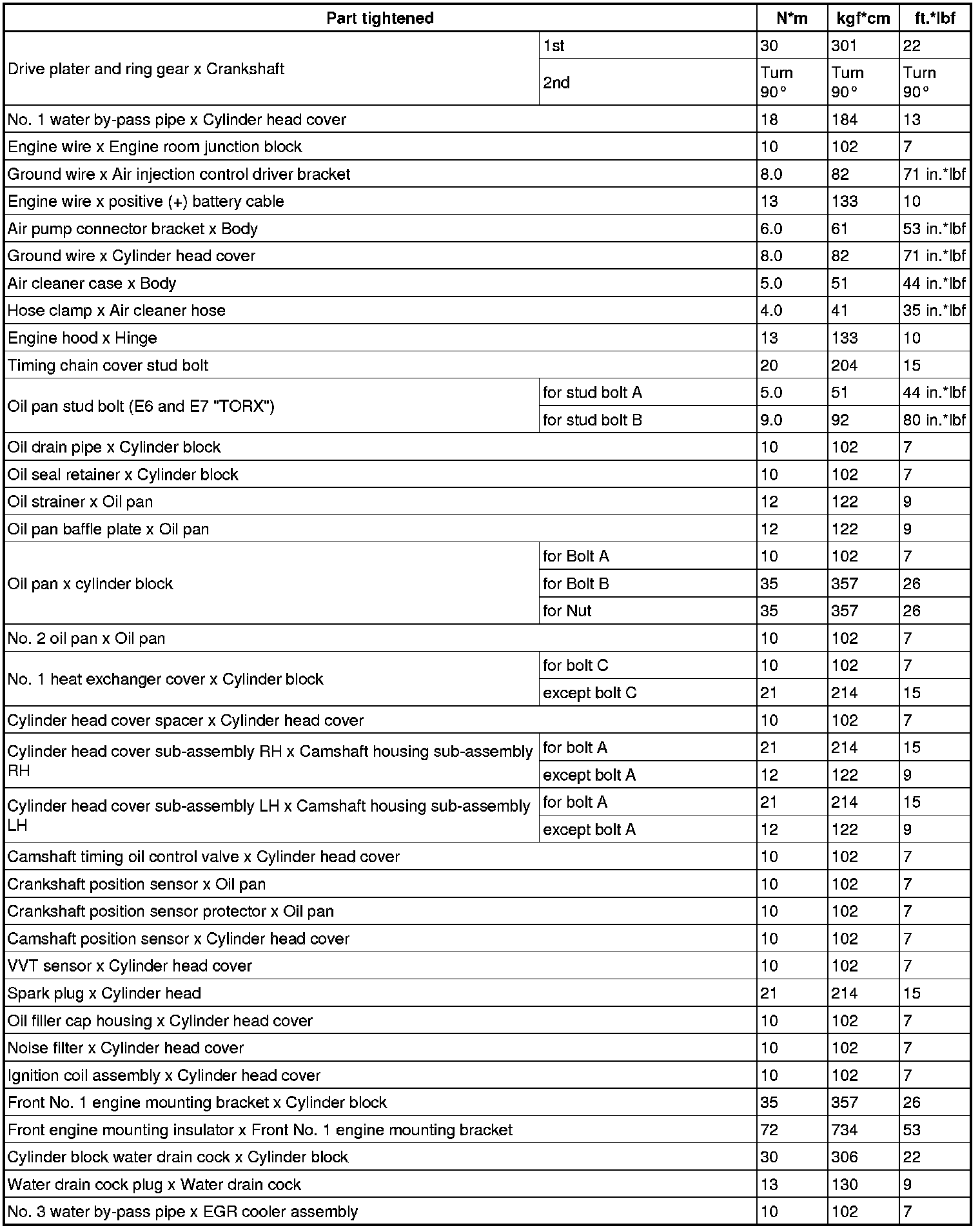 SPECIFICATIONS: 1UR-FE ENGINE MECHANICAL: TORQUE SPECIFICATIONS