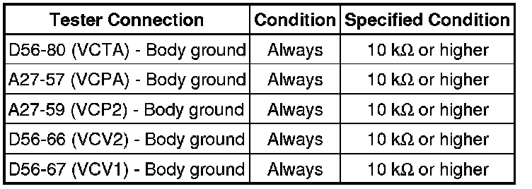 When the VC circuit is short-circuited, the microprocessor in the ECM and sensors that are supplied with power through the VC circuit are inactivated because the power is not supplied from the VC circuit. Under this condition, the system does not start up and the MIL does not illuminate even if the system malfunctions.