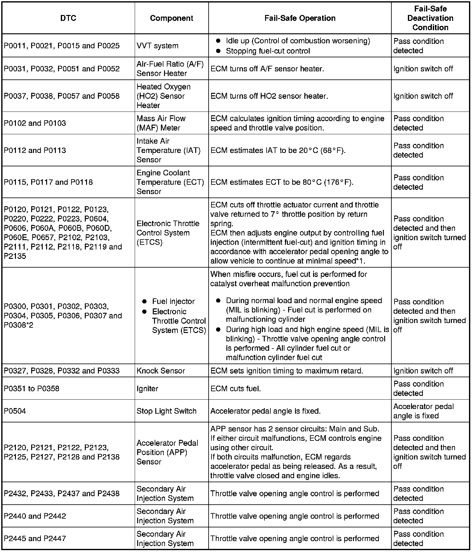 If any of the following DTCs are set, the ECM enters fail-safe mode to allow the vehicle to be driven temporarily.
