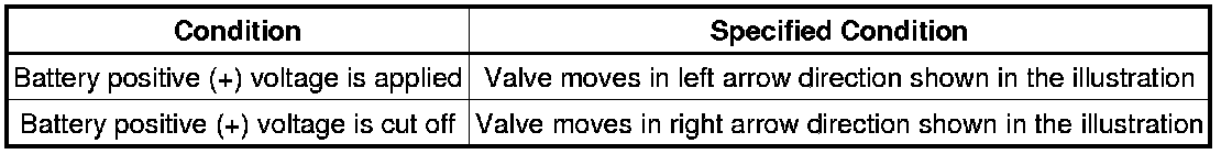 (b) Connect the battery positive (+) lead to terminal 1 and the negative (-) lead to terminal 2, and check the movement of the valve.