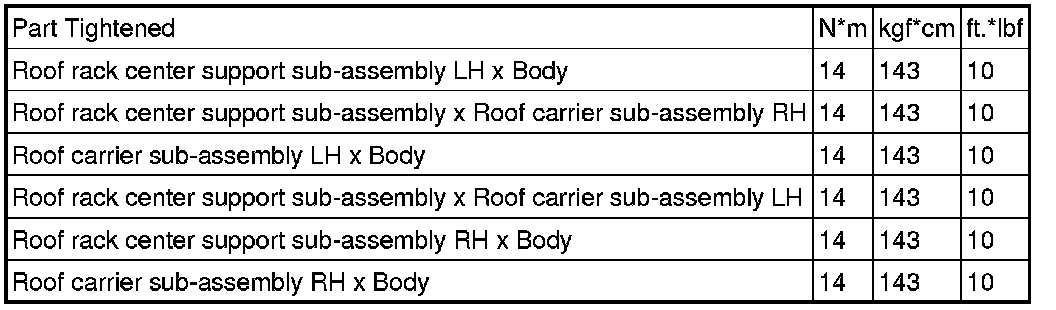 SPECIFICATIONS: EXTERIOR PANELS / TRIM: TORQUE SPECIFICATIONS