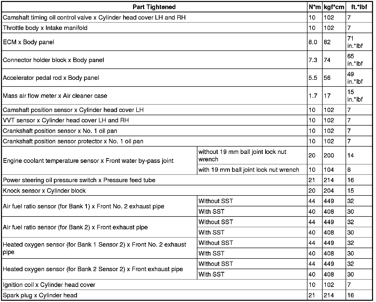 SPECIFICATIONS: 3UR-FE ENGINE CONTROL: TORQUE SPECIFICATIONS