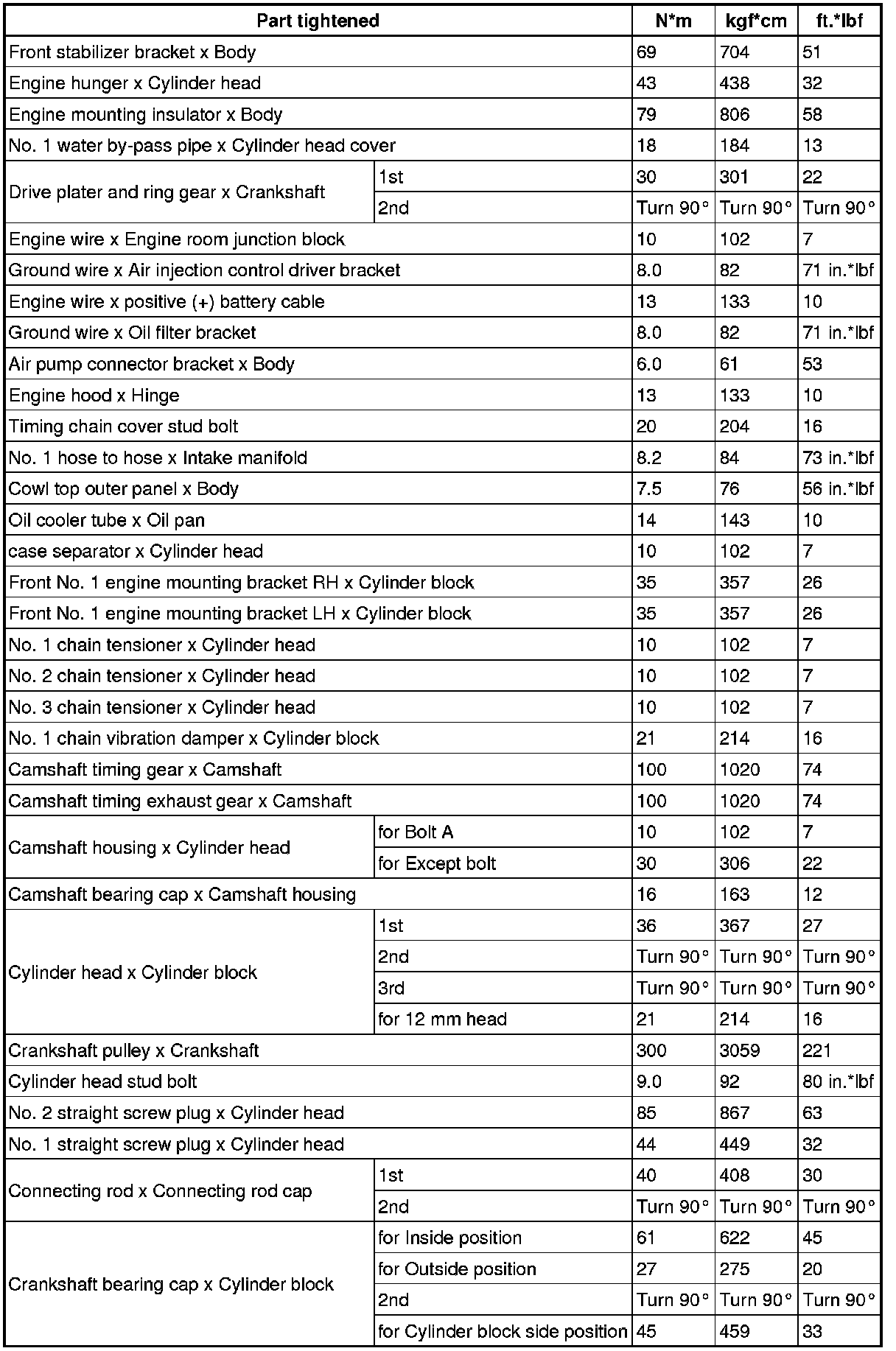 SPECIFICATIONS: 3UR-FE ENGINE MECHANICAL: TORQUE SPECIFICATIONS