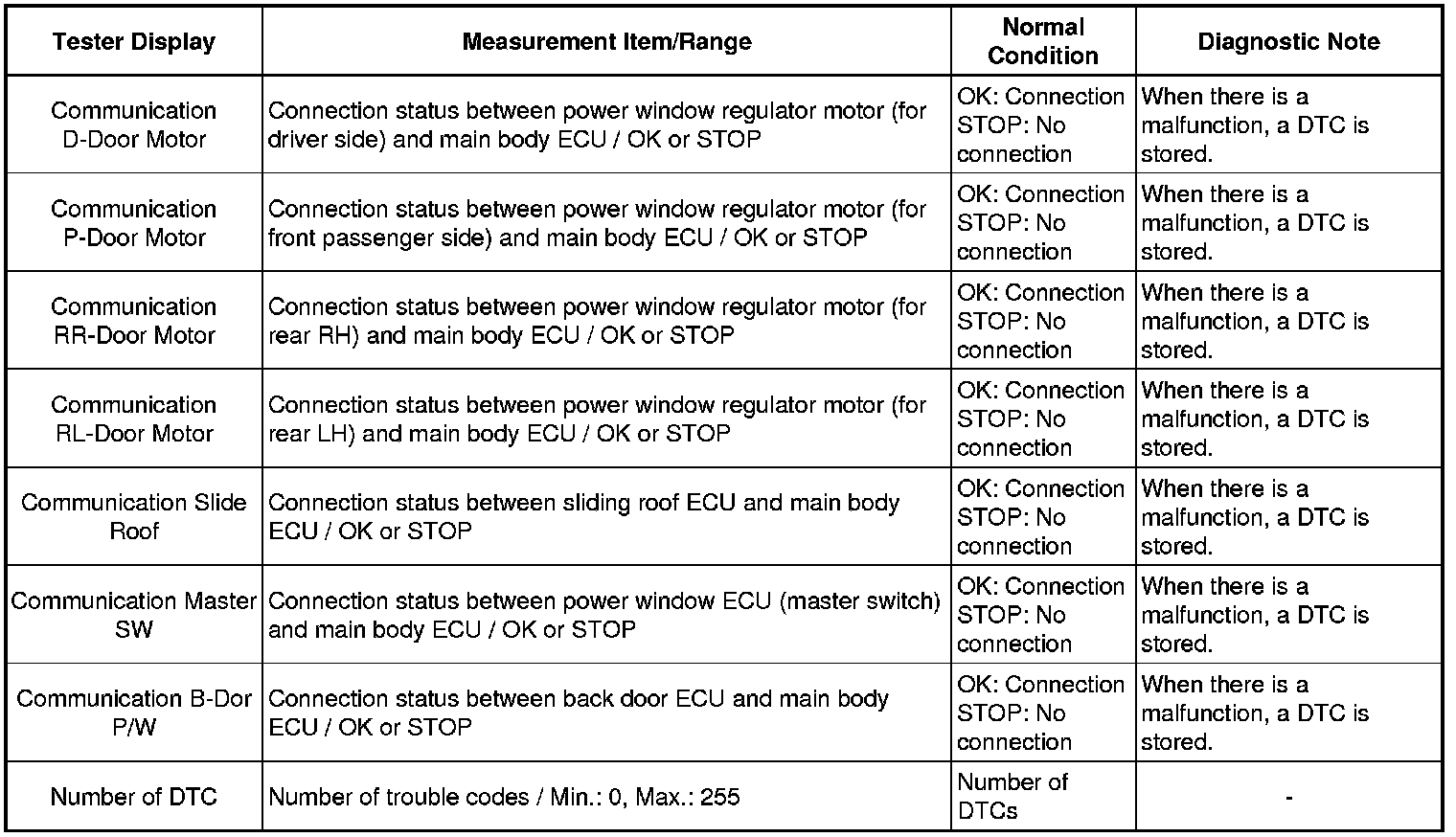 In the table below, the values listed under "Normal Condition" are reference values. Do not depend solely on these reference values when deciding whether a part is faulty or not.