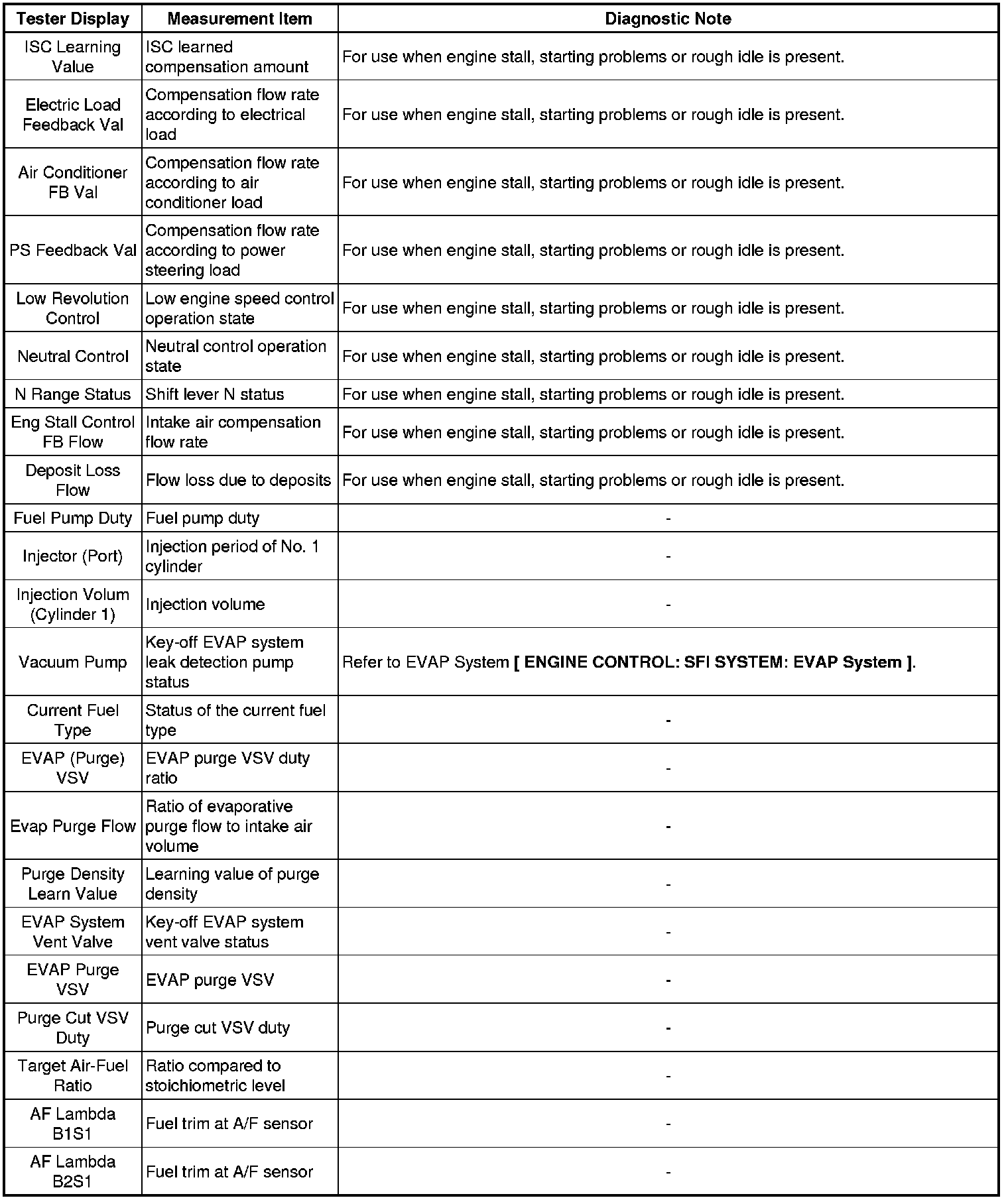 1UR-FE ENGINE CONTROL: SFI SYSTEM: FREEZE FRAME DATA