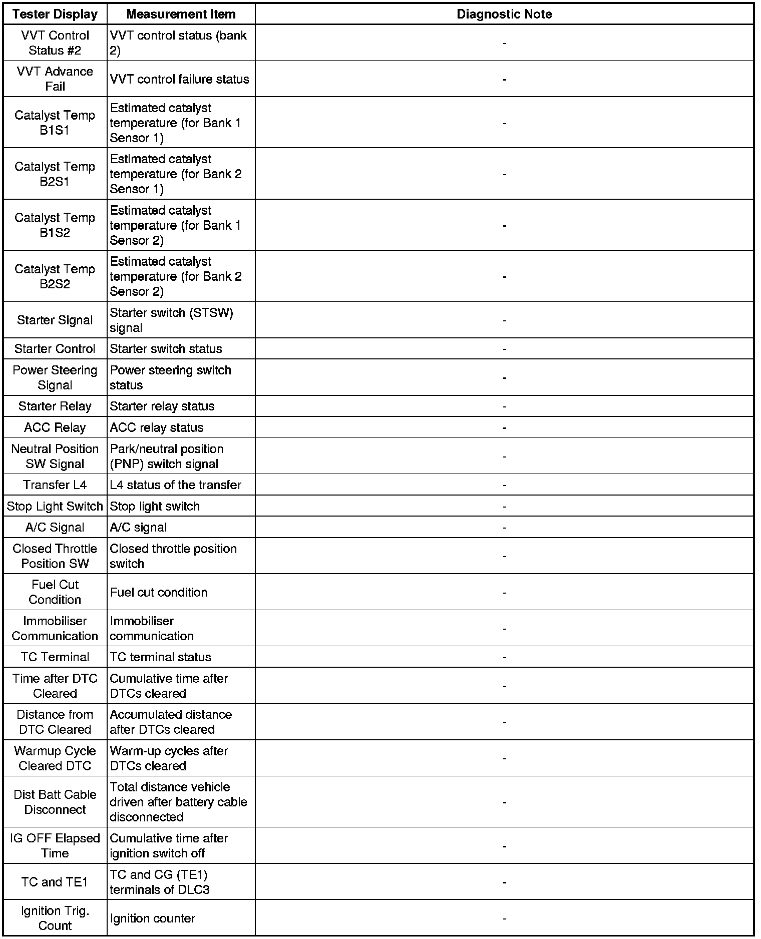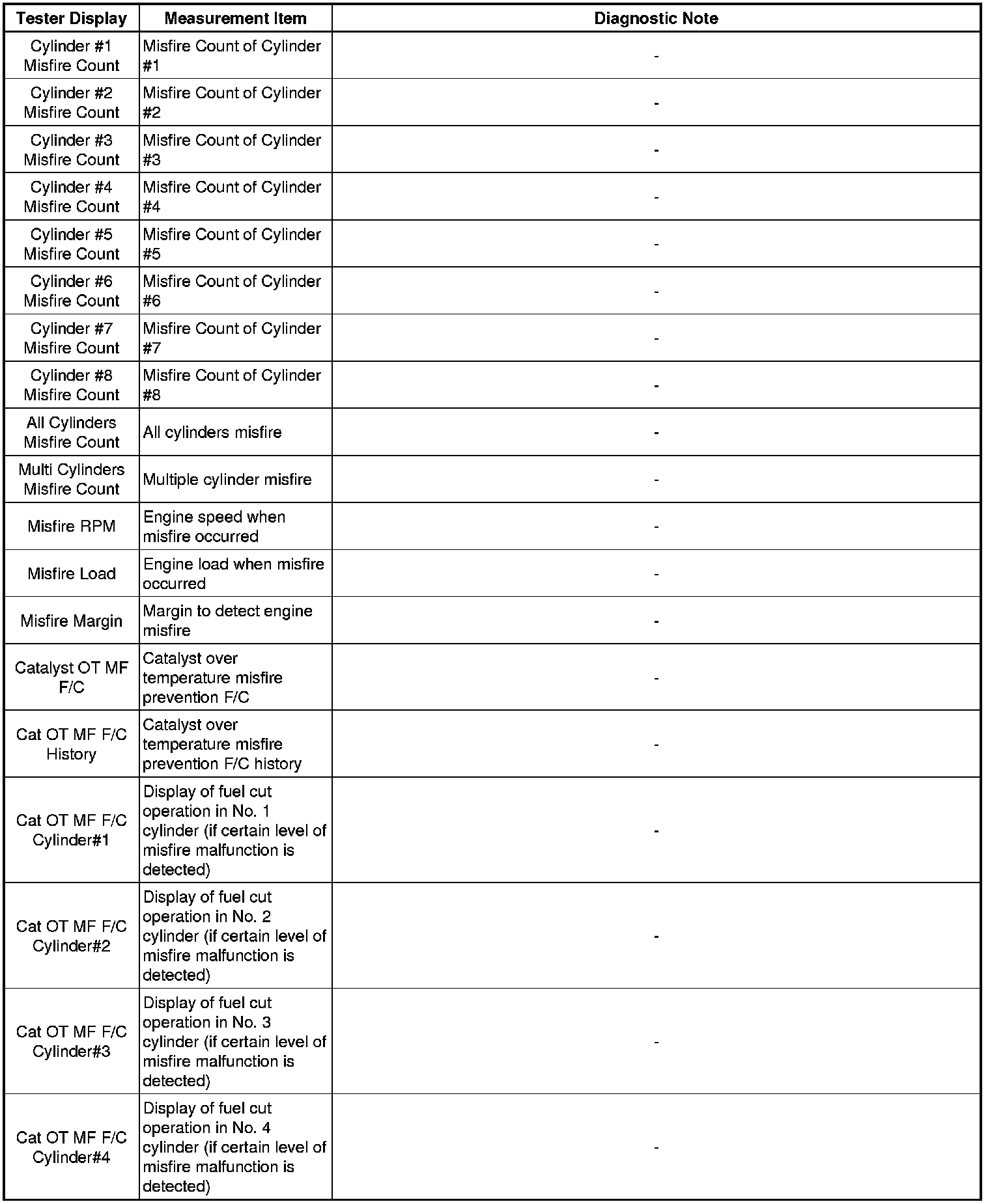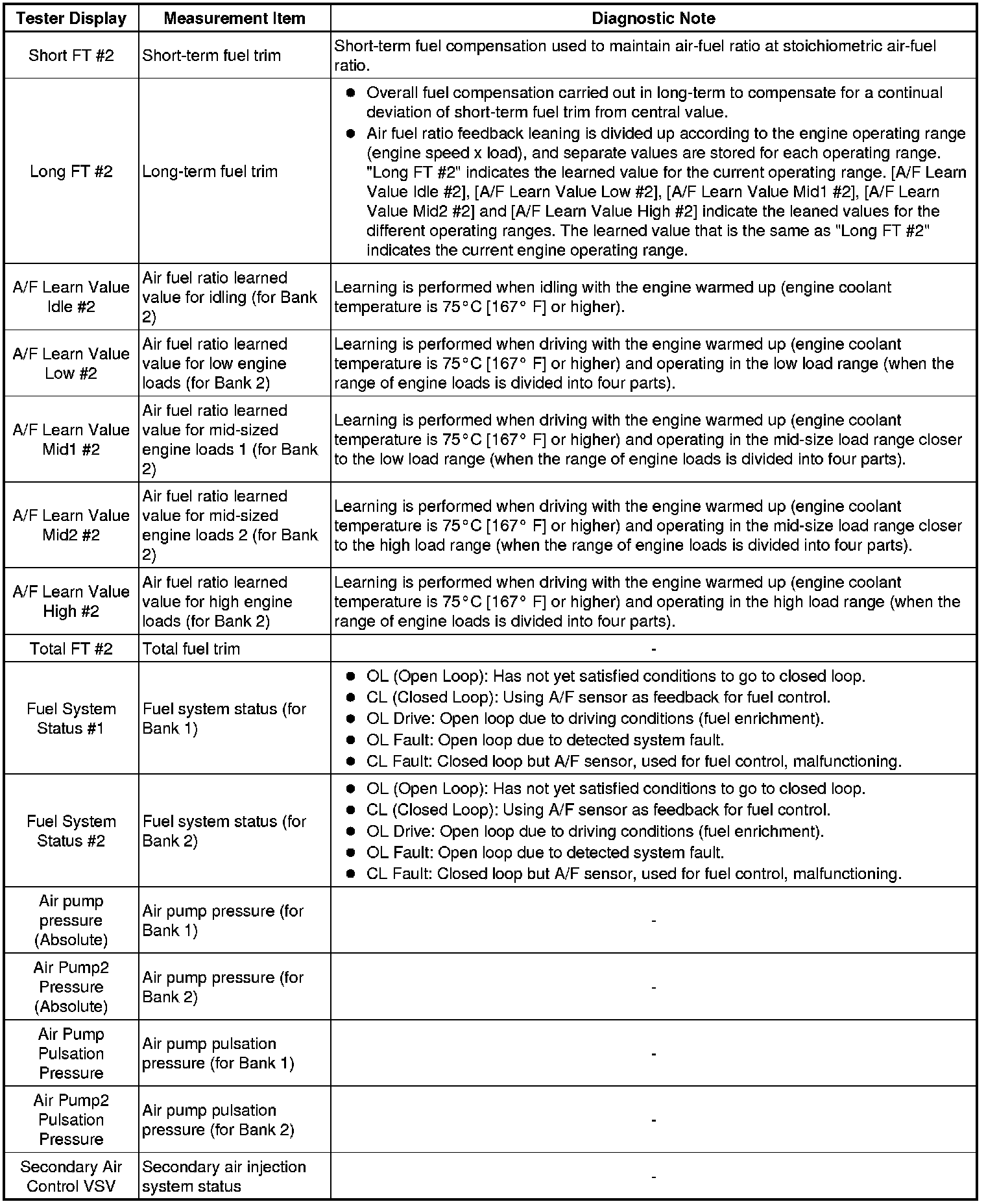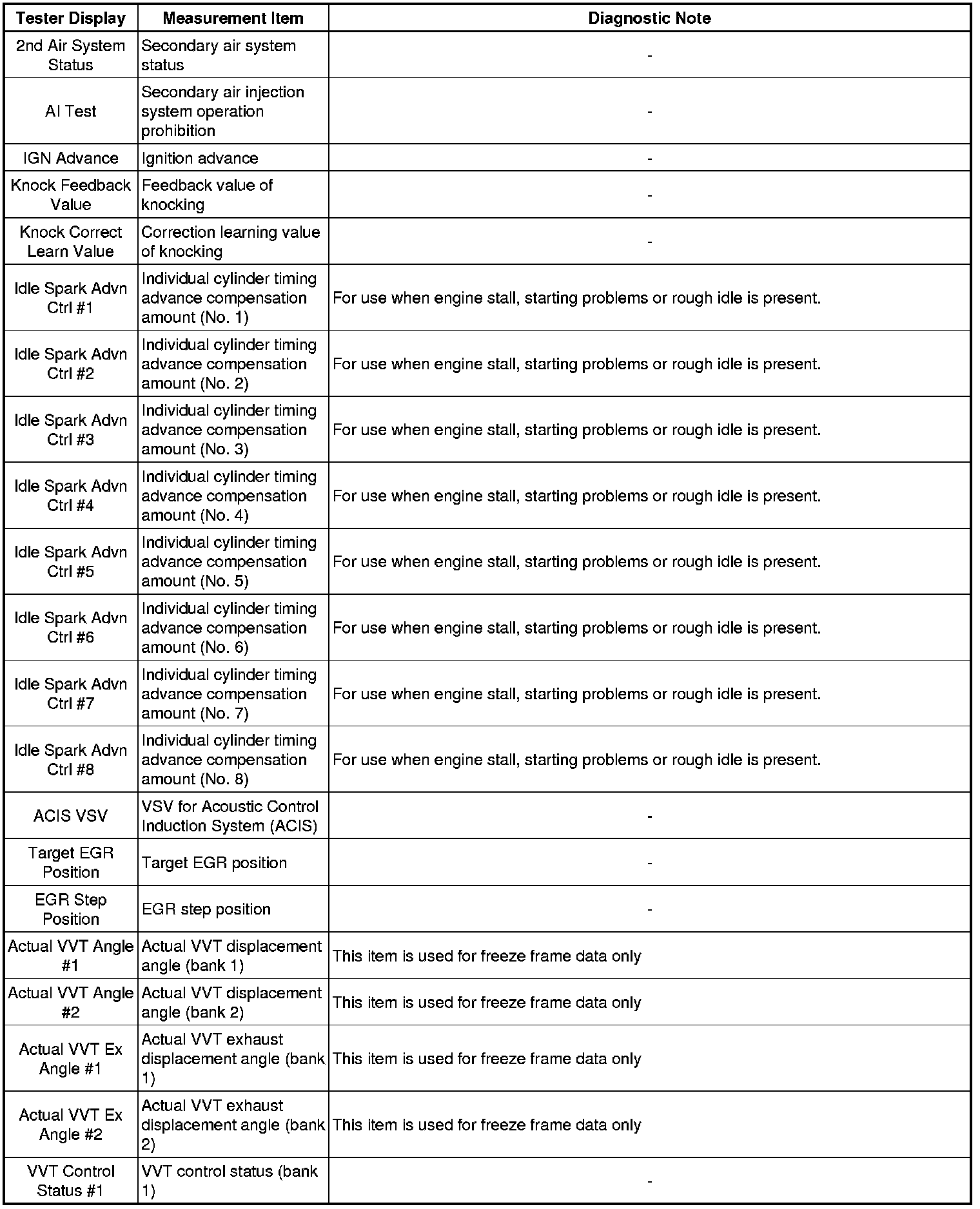 * Freeze frame data records the engine conditions (fuel system, calculated load, engine coolant temperature, fuel trim, engine speed, vehicle speed, etc.) when a malfunction is detected. When troubleshooting, it can help determine if the vehicle was moving or stationary, whether the engine was warmed up or not, whether the air-fuel ratio was lean or rich, and other data from the time the malfunction occurred.
