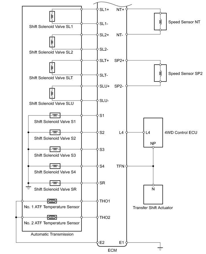 The configuration of the electronic control system for the A760F automatic transmission is as shown in the following chart.