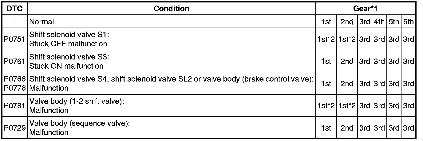 * *1: Actual gear shift (gear position) under fail-safe operation.