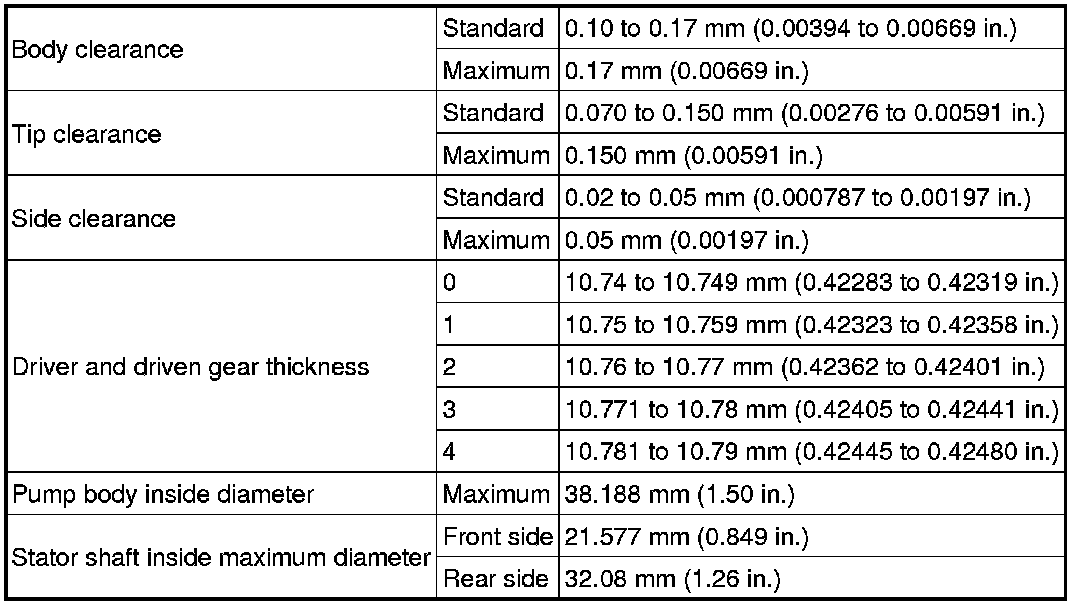 SPECIFICATIONS: A760F AUTOMATIC TRANSMISSION / TRANSAXLE: SERVICE DATA