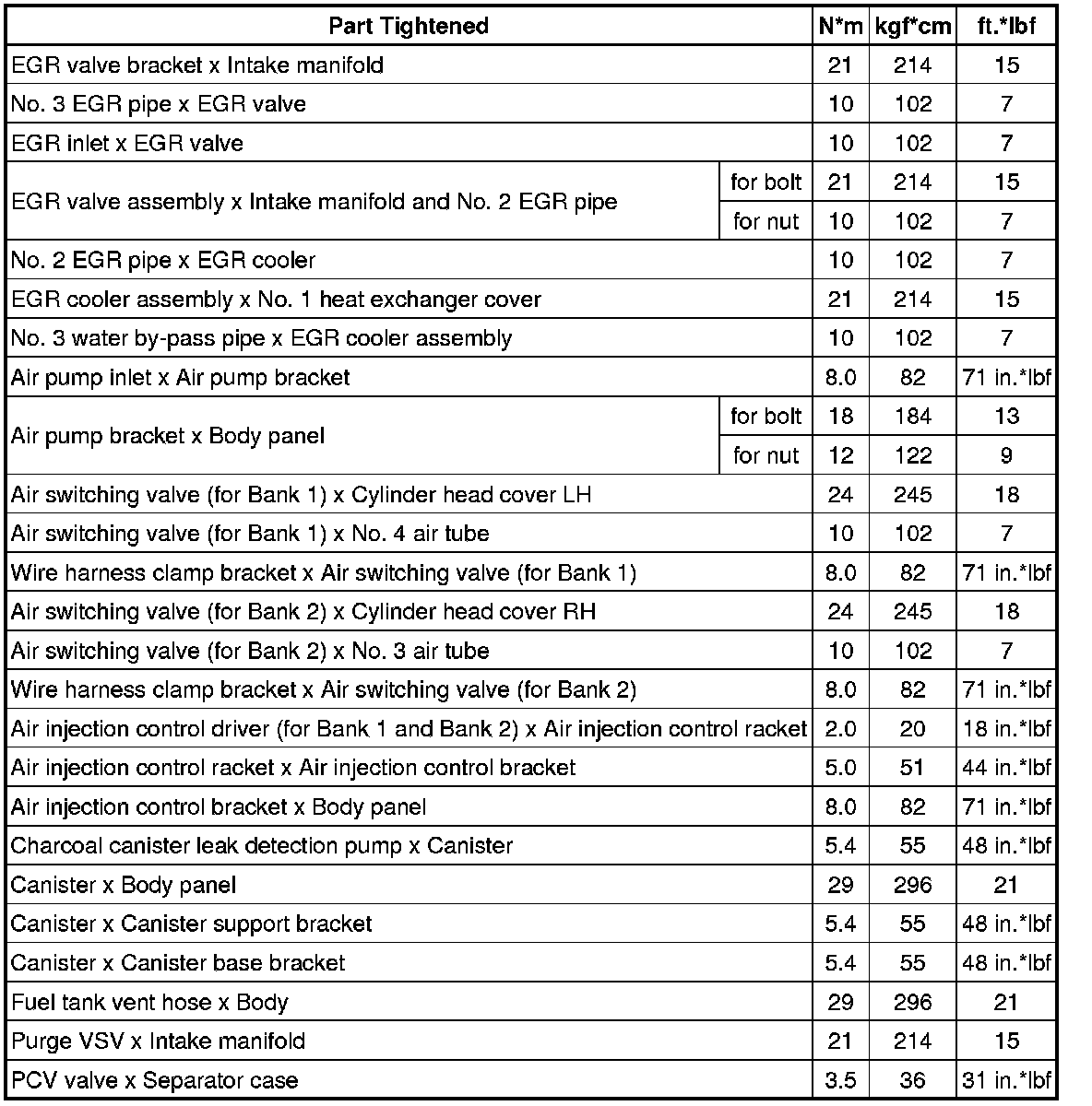 SPECIFICATIONS: 1UR-FE EMISSION CONTROL: TORQUE SPECIFICATIONS