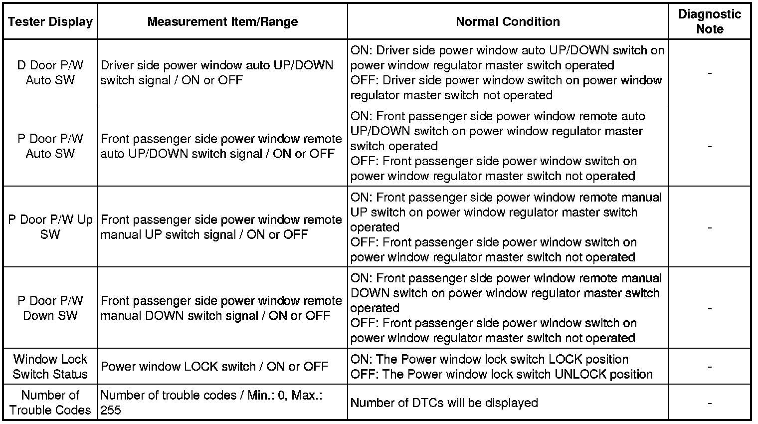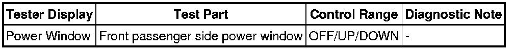 WINDOW / GLASS: POWER WINDOW CONTROL SYSTEM: DATA LIST / ACTIVE TEST