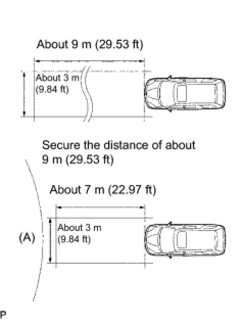 * Perform measurement indoors on a level ground and in front of a blank wall. Park the vehicle at least 9 m (29.53 ft) from the wall. When performing adjustment outdoors, make sure that it is not raining or snowing.