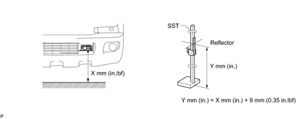 (2) Adjust the center height of the reflector 9 mm (0.35 in.) higher than the center of the luminous portion.