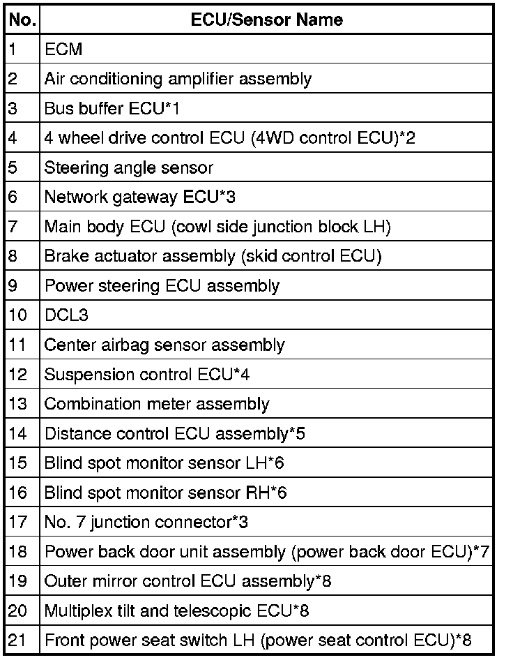 * *3: w/ Network Gateway ECU