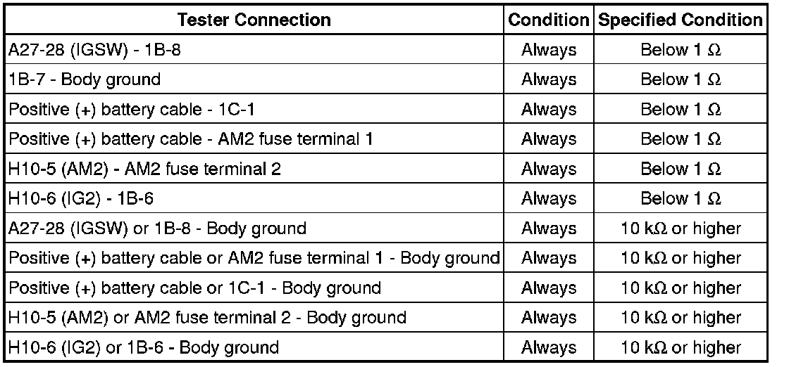 NG -- CHECK HARNESS AND CONNECTOR (RELAY BLOCK - ECM, IGNITION SWITCH, BATTERY AND BODY GROUND)
