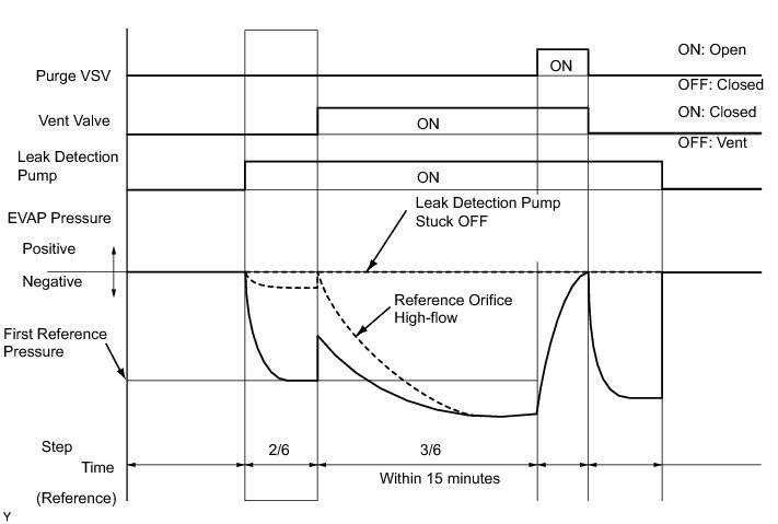 (b) Compare the EVAP pressure in step 3/6 and the second reference pressure (step 5/6).