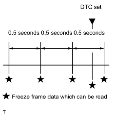 * The ECM records engine conditions in the form of freeze frame data every 0.5 seconds. Using the Techstream, 5 separate sets of freeze frame data can be checked.
