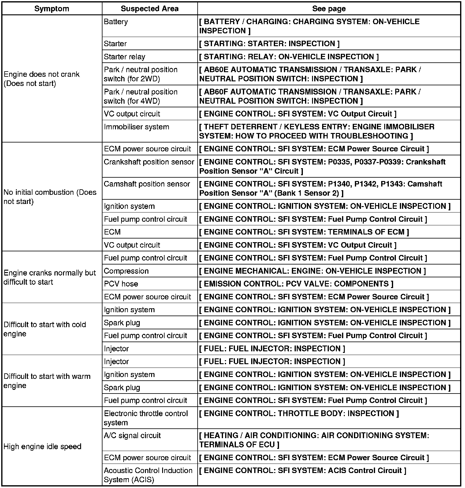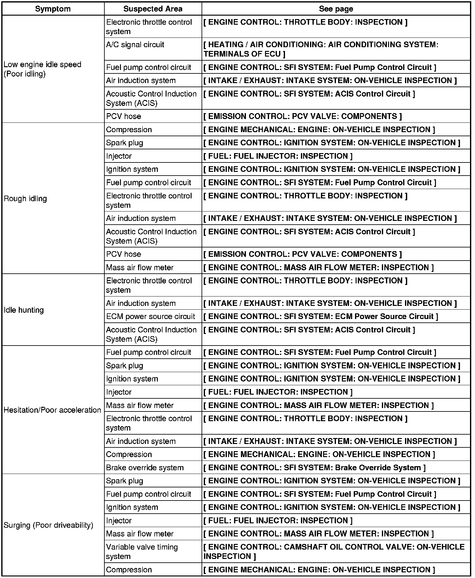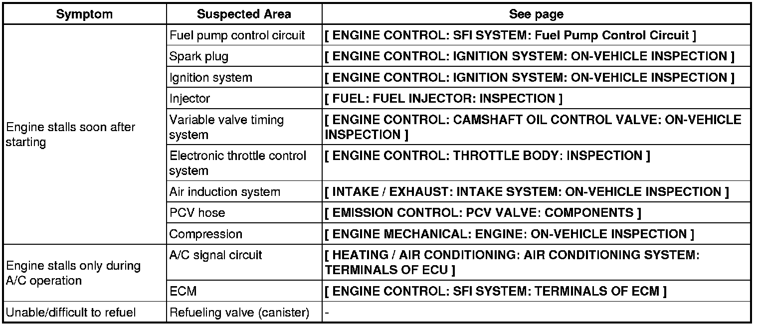 3UR-FE ENGINE CONTROL: SFI SYSTEM: PROBLEM SYMPTOMS TABLE