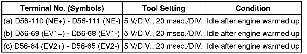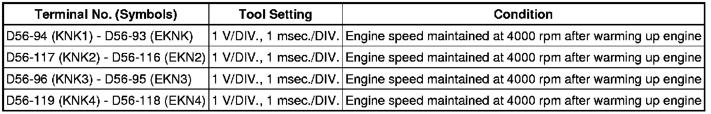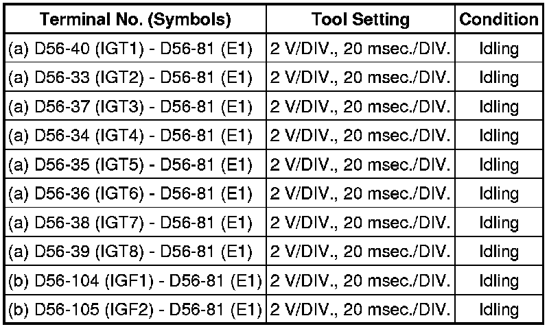 If the waveform is not similar to the illustration, check the waveform again after idling for 10 minutes or more.