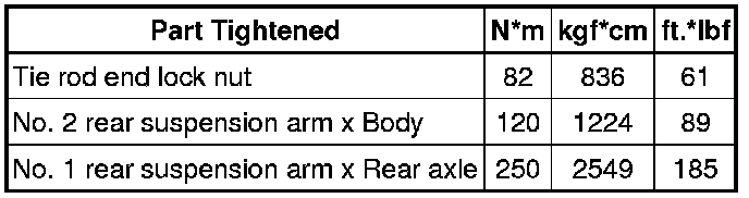 SPECIFICATIONS: ALIGNMENT / HANDLING DIAGNOSIS: TORQUE SPECIFICATIONS