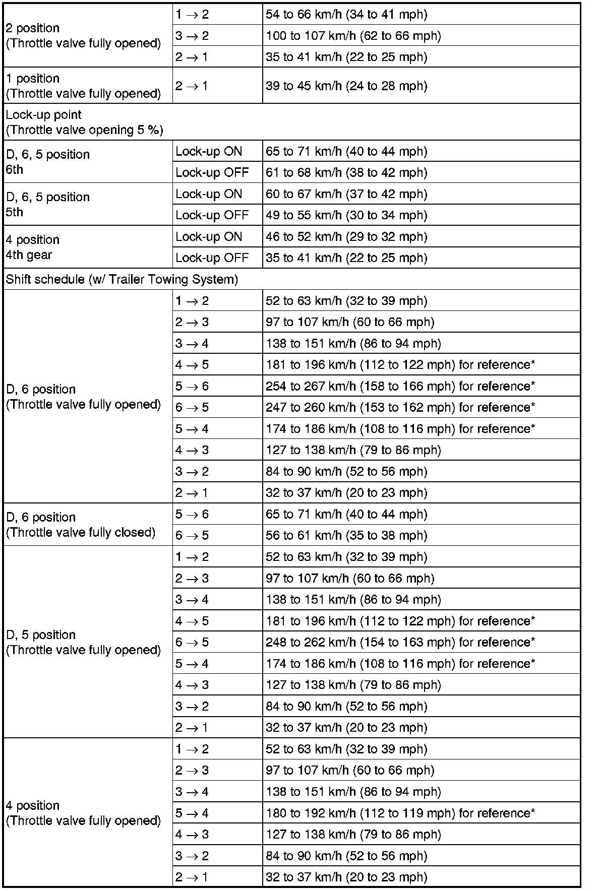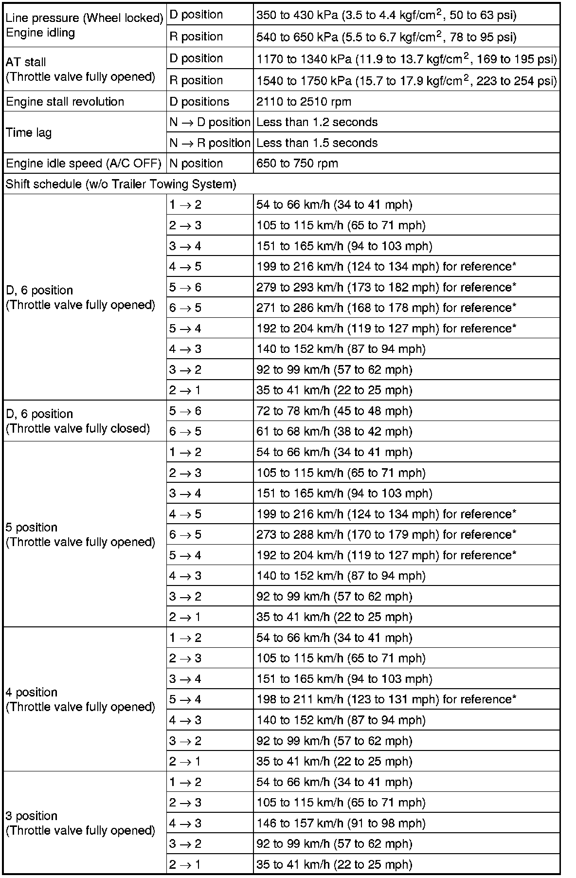 SPECIFICATIONS: AB60F AUTOMATIC TRANSMISSION / TRANSAXLE: SERVICE DATA