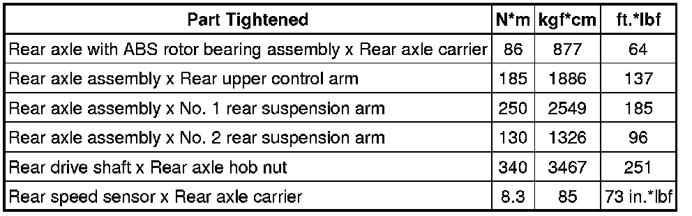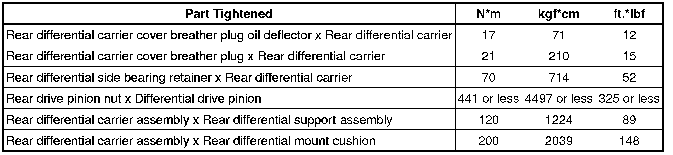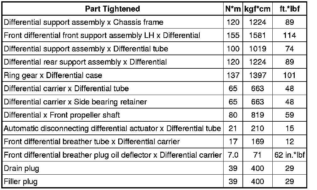 SPECIFICATIONS: AXLE AND DIFFERENTIAL: TORQUE SPECIFICATIONS