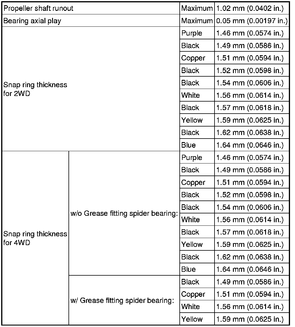 SPECIFICATIONS: DRIVE SHAFT / PROPELLER SHAFT: SERVICE DATA