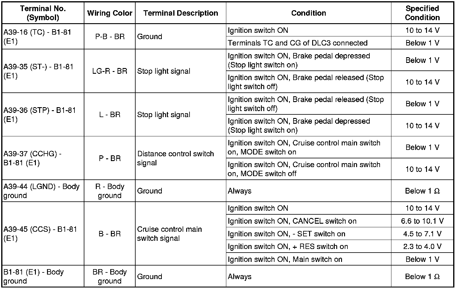 CRUISE CONTROL: DYNAMIC RADAR CRUISE CONTROL SYSTEM: TERMINALS OF ECU