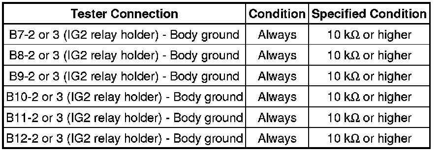 NG -- CHECK HARNESS AND CONNECTOR (IG2 RELAY - FUEL INJECTOR ASSEMBLY)