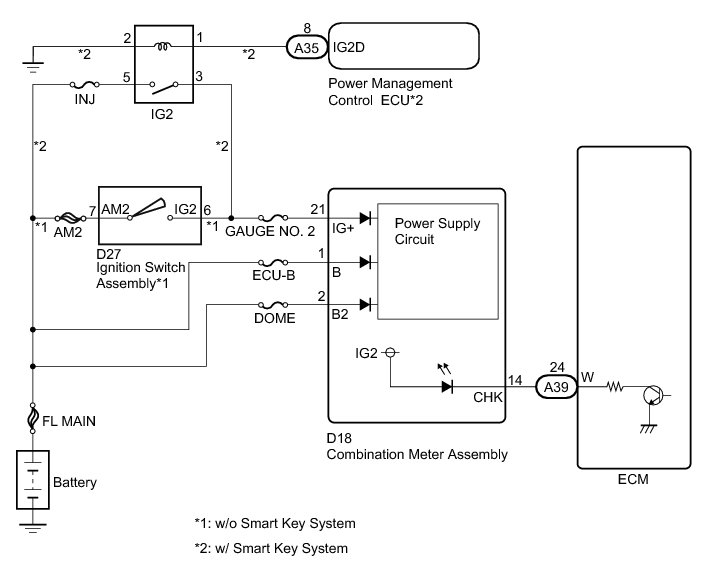 The Malfunction Indicator Lamp (MIL) is used to indicate vehicle malfunctions detected by the ECM. By turning the ignition switch to ON, power is supplied to the MIL circuit, and the ECM provides the circuit ground which illuminates the MIL.