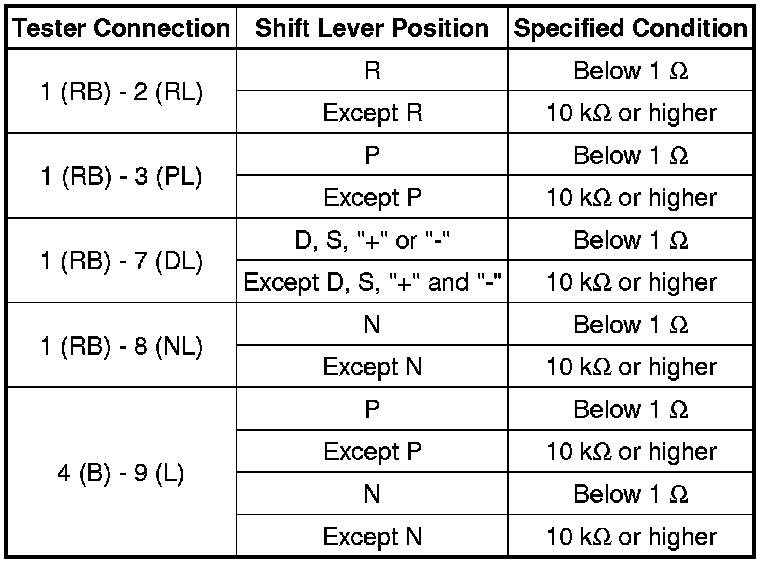 U660F AUTOMATIC TRANSMISSION / TRANSAXLE: PARK / NEUTRAL POSITION SWITCH: INSPECTION