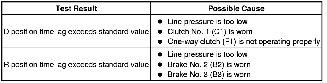 (2) Move the shift lever to D and measure the time until the shock is felt.