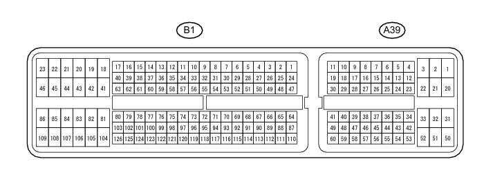 In the table, first follow the information under "Condition". Look under "Terminal No. (Symbol)" for the terminals to be inspected. The standard voltage and resistance between the terminals is shown under "Specified Condition".