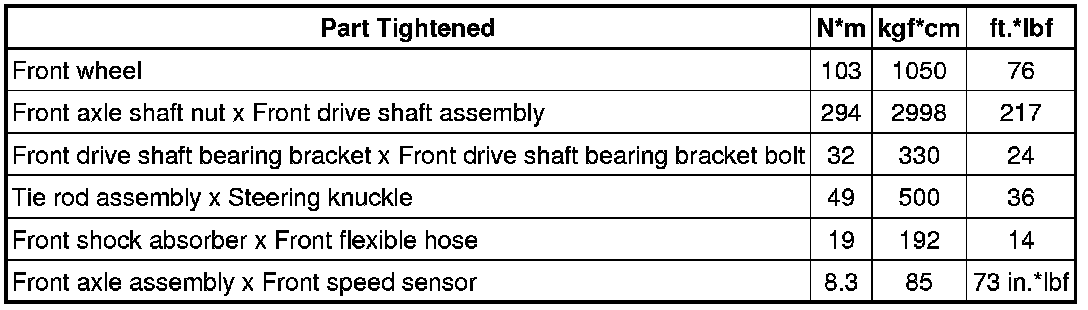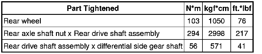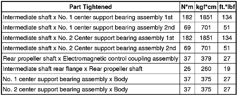 SPECIFICATIONS: DRIVE SHAFT / PROPELLER SHAFT: TORQUE SPECIFICATIONS