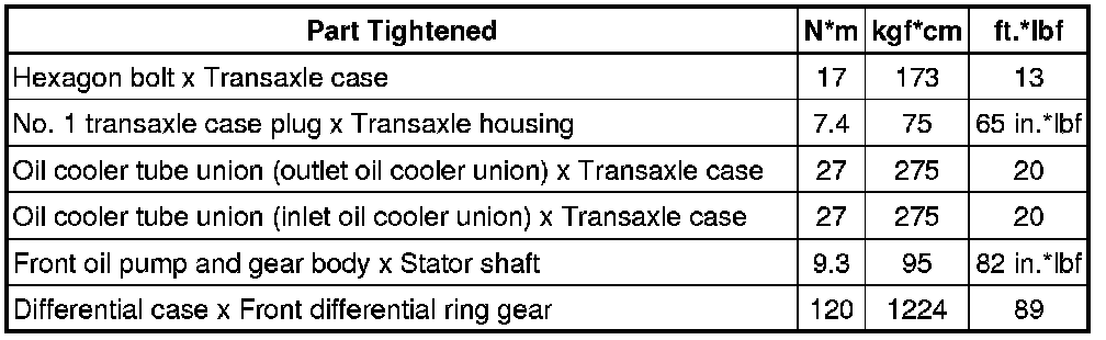 SPECIFICATIONS: U660F AUTOMATIC TRANSMISSION / TRANSAXLE: TORQUE SPECIFICATIONS