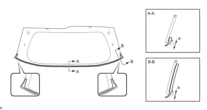 (2) Lightly press the back door glass to ensure that the back door glass is securely fit to the vehicle body (when glass without a clip is used).