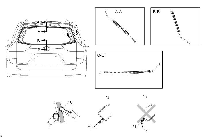 (a) Apply Primer G to the installation part of the No. 2 back window glass spacer.