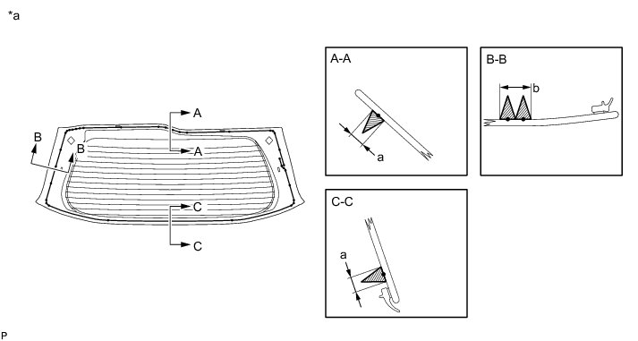 (3) Apply adhesive to the back door glass as shown in the illustration.