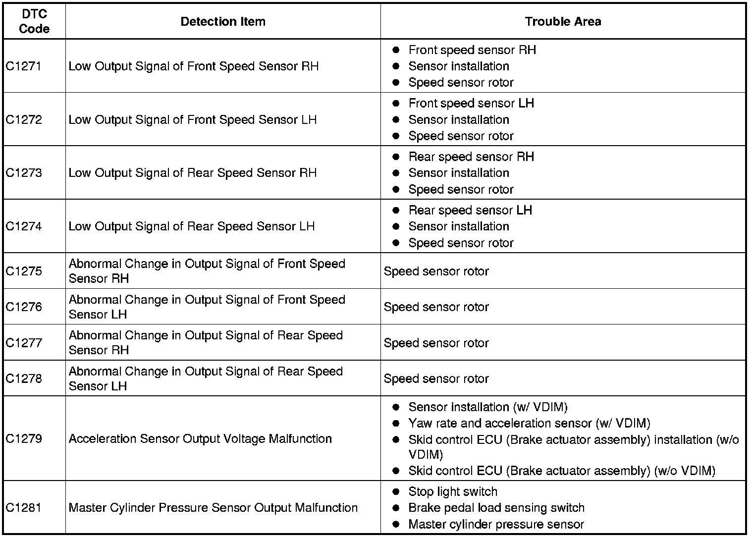 * During Test Mode (signal check), the skid control ECU (brake actuator assembly) records all DTCs detected in the sensor check. By performing Test Mode (signal check), the codes are cleared if a normal condition is confirmed. The remaining codes are the codes where a malfunction was found.