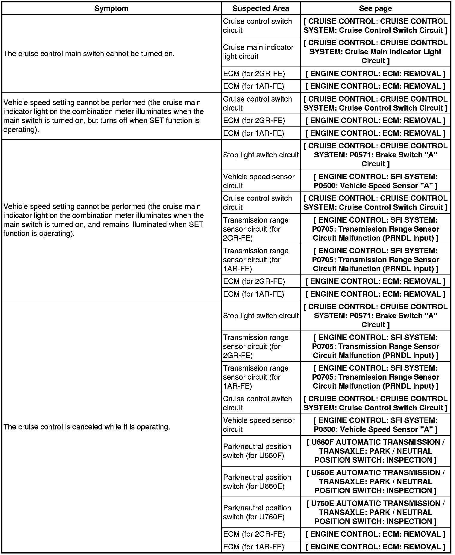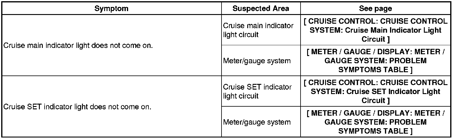 CRUISE CONTROL: CRUISE CONTROL SYSTEM: PROBLEM SYMPTOMS TABLE