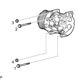 (c) Install the compressor with pulley with the 2 bolts and 2 nuts.