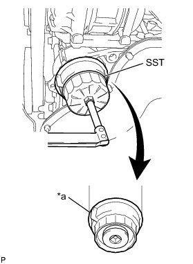 (f) Using SST, tighten the oil filter cap.