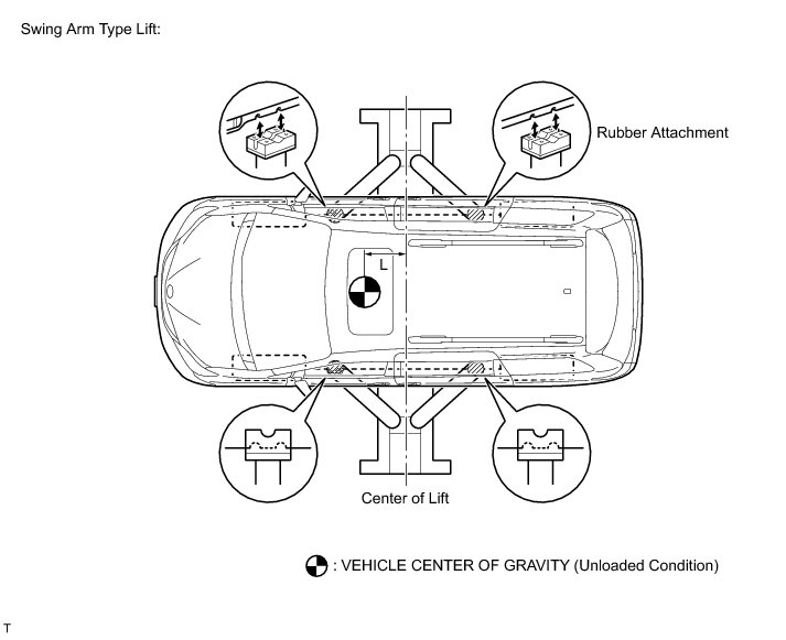 (c) Position the vehicle so that its center of gravity is centered on the lift (length of "L" in the illustration should be as short as possible).