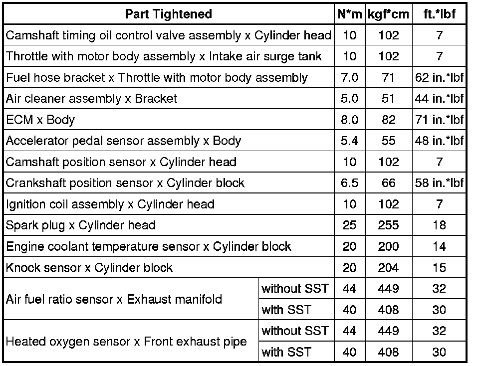 SPECIFICATIONS: 1AR-FE ENGINE CONTROL: TORQUE SPECIFICATIONS