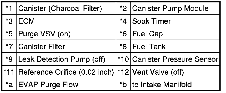 * *2: This result suggests that due to purge line blockage or purge VSV malfunction, the DTC was stored by the purge flow monitor while the engine was running, or that key-off monitor test result were nearly borderline values.