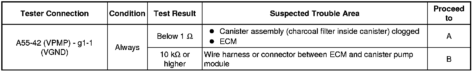 B -- INSPECT CANISTER PUMP MODULE (POWER SOURCE FOR VENT VALVE)