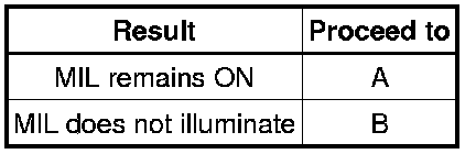 The MIL operation can be checked visually: When the ignition switch is turned to ON, the MIL should be illuminated and should turn off after engine is started. If the MIL remains illuminated or is not illuminated, conduct the following troubleshooting procedure using the Techstream.