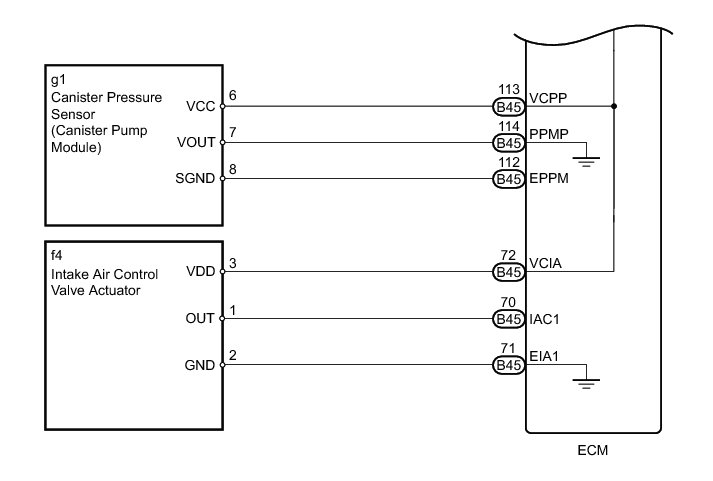 When the VC circuit is shorted, the microprocessor in the ECM and sensors that are supplied with power through the VC circuit are inactivated because the power is not supplied from the VC circuit. Under this condition, the system does not start up and the MIL does not illuminate even if the system malfunctions.