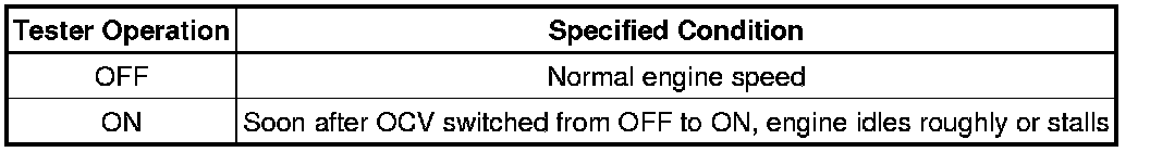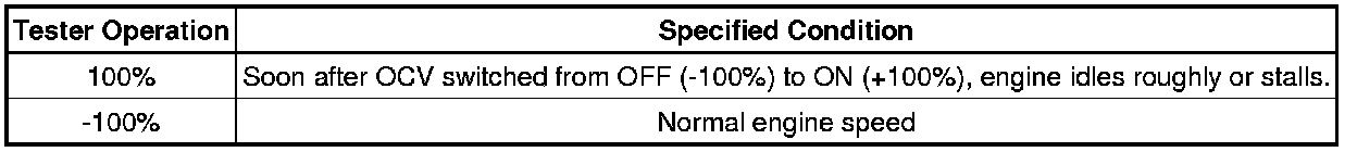 If the result is not as specified, check the oil control valve, wire harness and ECM.