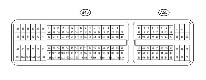 In the table, first follow the information under "Condition". Look under "Terminal No. (Symbol)" for the terminals to be inspected. The standard voltage between the terminals is shown under "Specified Condition".